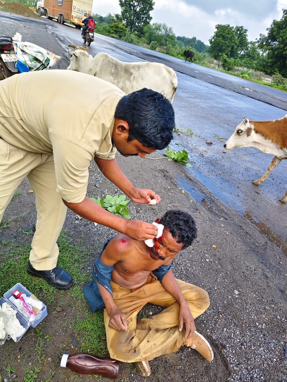 यह ध्यान देने योग्य है कि यदि कुछ ही क्षणों की देर होती और कोई तेज रफ्तार भारी वाहन पीछे से आता, तो यह दुर्घटना और भी भयावह रूप ले सकती थी।घायल व्यक्ति को होश में आने पर उसका नाम व गांव पूछकर उसके परिजनों को सूचना दी गई, जिससे उसे शीघ्र ही घर पहुंचाया जा सका।इस संपूर्ण घटना में आरक्षक दिनेश महंत द्वारा दिखाई गई मानवीय संवेदनशीलता, कर्तव्यनिष्ठा, और त्वरित निर्णय क्षमता अत्यंत सराहनीय है। उनकी सेवा भावना, सामाजिक उत्तरदायित्व और “पुलिस मित्र” की परिभाषा को चरितार्थ करने वाली यह कार्रवाई अनुकरणीय है।
