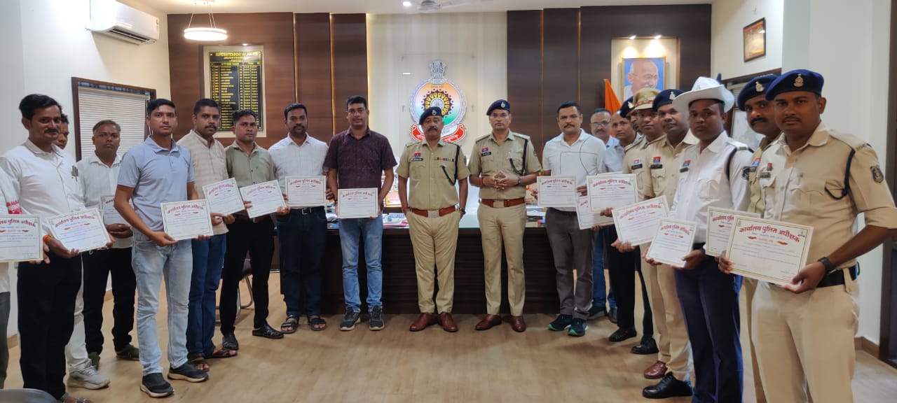 जिसके द्वारा लुट, चोरी, हत्या के मामले में आरोपियों की पातासाजी कर पकड़ना जिसमें निरीक्षक सागर पाठक सहित 10 अधिकारी एवं कर्मचारियों को उत्कृष्ट कार्य करने से प्रशस्ति पत्र देकर सम्मानित किया गया।