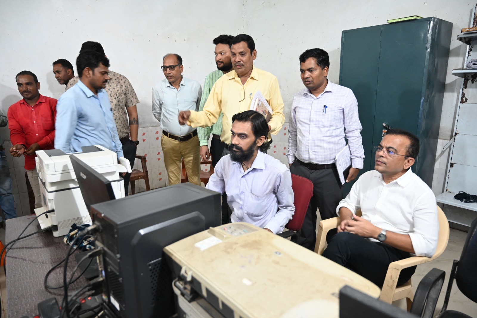 जांजगीर-चांपा 2 सितम्बर 2025/ कलेक्टर श्री जन्मेजय महोबे ने आज बम्हनीडीह के तहसील कार्यालय, जनपद पंचायत कार्यालय एवं कृषक सेवा सहकारी समिति मर्यादित में चल रहे कृषक पंजीयन कार्य का औचक निरीक्षण किया। उन्होंने अधिकारियों को निर्देशित किया कि राजस्व के छोटे-छोटे प्रकरणों का तुरंत निराकरण किया जाए। निरीक्षण के दौरान उन्होंने तहसील कार्यालय में नामांतरण, अविवादित व विवादित बंटवारे, अभिलेख दुरूस्ती, त्रुटि सुधार, सीमांकन से संबंधित प्रकरणों की स्थिति की विस्तृत जानकारी ली।
