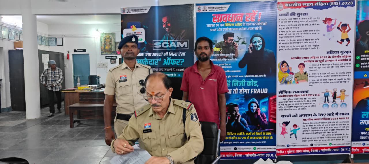 गिरफ्तार आरोपी 1- संतोष यादव पिता बनाउ राम यादव उम्र 35 वर्ष निवासी भैंसा बाजार के पास निवासी चाम्पा 2- खोलू सहिस पिता कन्हैया लाल