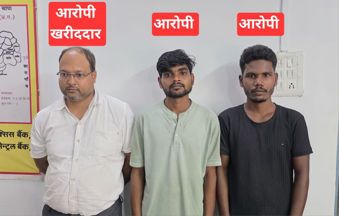 जांजगीर चाम्पा-मामले का संक्षिप्त विवरण-इस प्रकार है कि प्रार्थी विनोद गैस एजेंसी शंकर नगर ने थाना आकर रिपोर्ट दर्ज कराया कि इसकी तहसील रोड में विनोद गैस एजेंसी एवं इलेक्ट्रिकल आइटम की दुकान है जहां से विगत दिनों पांच मंडल कॉपर वायर किसी अज्ञात व्यक्ति के द्वारा चोरी किया गया है की रिपोर्ट पर तत्काल थाना में अपराध पंजीबद्ध किया गया तथा इसकी सूचना जिले की पुलिस अधीक्षक श्री विजय कुमार पांडेय (भापुसे), अतिरिक्त पुलिस अधीक्षक श्री उमेश कश्यप, एसडीओपी चापा श्री यदुमणी सिदार को दिया गया जिस पर अधिकारियों द्वारा तत्काल अज्ञात आरोपी का पता तलाश कर कार्यवाही करने के निर्देश प्राप्त हुए इसके परिपालन में थाना प्रभारी जयप्रकाश गुप्ता के नेतृत्व में थाने से एक पुलिस टीम मौके की ओर रवाना किया गया पुलिस टीम के द्वारा प्रार्थी की दुकान तथा आस पास में लगे सीसीटीवी कैमरे को चेक किया गया जिसमें दुकान का एक कर्मचारी संदिग्ध हालत में दुकान के अंदर घूमते दिखा तथा दुकान में रखें 01 बंडल कॉपर वायर को चोरी करते दिखा जिसे पुलिस टीम के द्वारा हिरासत में लेकर पूछताछ किया गया जो प्रारंभिक तौर पर पुलिस टीम को गुमराह करता रहा परंतु तकनीकी साक्ष्य के आधार पर बारिकी से पूछताछ करने पर अपने एक अन्य साथी के साथ मिलकर दुकान तथा गोदाम से 05 बंडल कॉपर वायर चोरी करने का अपराध घटित करना स्वीकार किया तथा चोरी किए गए कॉपर वायर को लायन्स चौक के पास स्थित मंगलम ट्रेडर्स के मालिक को बेचना बताये जिस पर पुलिस टीम के द्वारा मंगलम ट्रेडर्स को चेक किया गया तथा दूकान के मालिक नरेन्द्र शर्मा के कब्जे से चोरी गए 01 बंडल कॉपर वायर बरामद किया गया आरोपी नरेंद्र शर्मा से चोरी गए कॉपर वायर के संबंध में पूछताछ किया गया जो नरेन्द्र शर्मा ने चोरी के पांच बंडल कॉपर वायर को खरीदना स्वीकार किया जिसमें से चार बंडल कॉपर वायर को 109000/- रु में बेचना बताया नरेन्द्र शर्मा के कब्जे से 01 बंडल कॉपर वायर तथा बिक्री रकम 109000/-रु तथा दोनों कर्मचारी आरोपियों के कब्जे से 4000/- रु कुल 113000/-रु को जप्त किया गया तीनों आरोपियों के द्वारा अपराध घटित करना स्वीकार करने से तीनों आरोपियों को विधिवत गिरफ्तार किया गया तथा न्यायिक रिमांड पर भेजा गया।