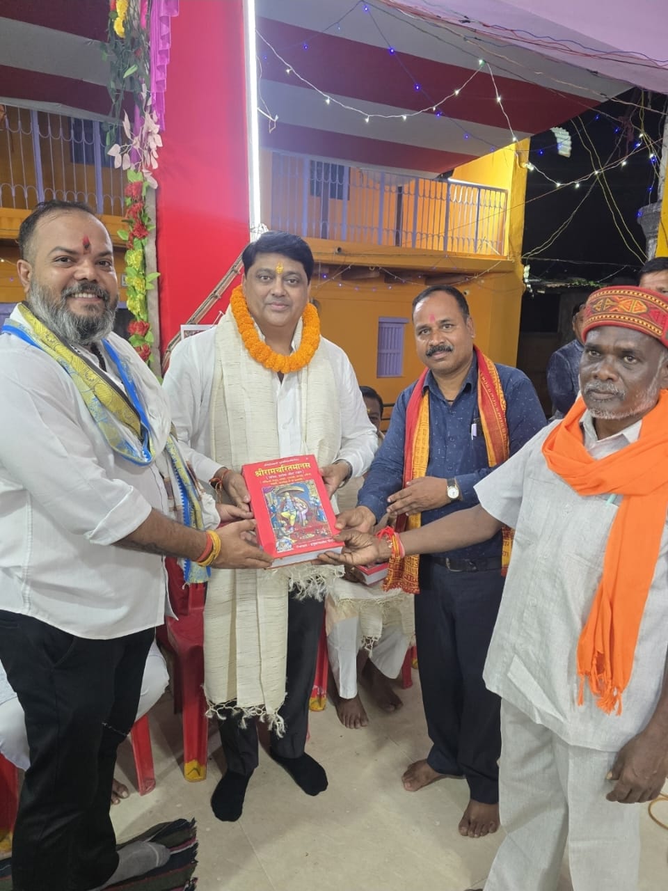 चाम्पा(कुरदा)-इस अवसर पर ग्राम के सरपंच श्री नरसिंह साहू नवधा समिति एवं ग्राम के गणमान्य नागरिकों ने सभी अतिथियों का अभिनंदन किये यज्ञ करता महराज