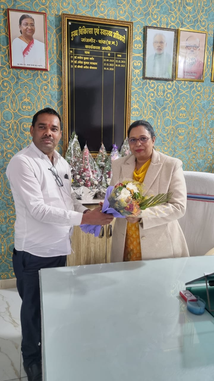 जांजगीर-चाम्पा। नेता प्रतिपक्ष डॉ. चरणदास महंत के जिला प्रतिनिधि, स्वास्थ्य एवं परिवार कल्याण विभाग, जांजगीर-चाम्पा संतोष यादव ने नवनियुक्त जिला स्वास्थ्य अधिकारी डॉ. (श्रीमती) अनीता